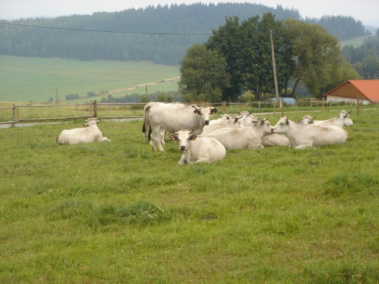 Rašelina a.s. breeds gascogne cows on farms in the Bohemian Forest.
